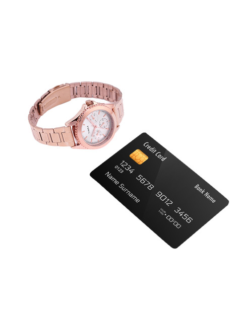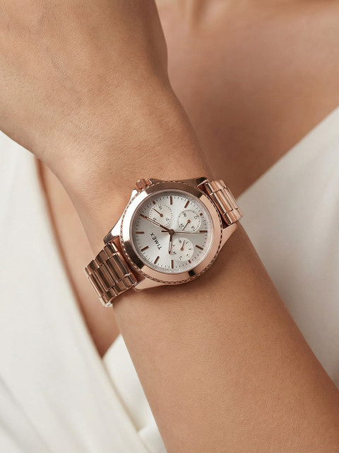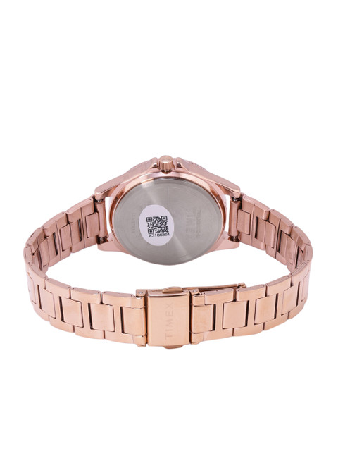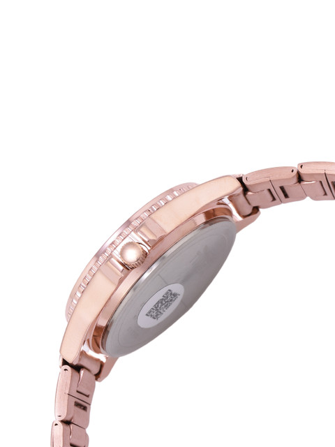 Strap Style: rose gold toned, bracelet style, stainless steel strap with a foldover closure
