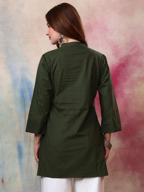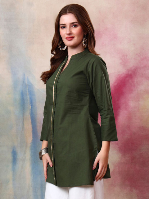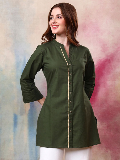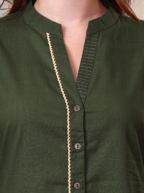 Tissu Women Pure Cotton Mandarin Collar Lace Work Tunic Kurti