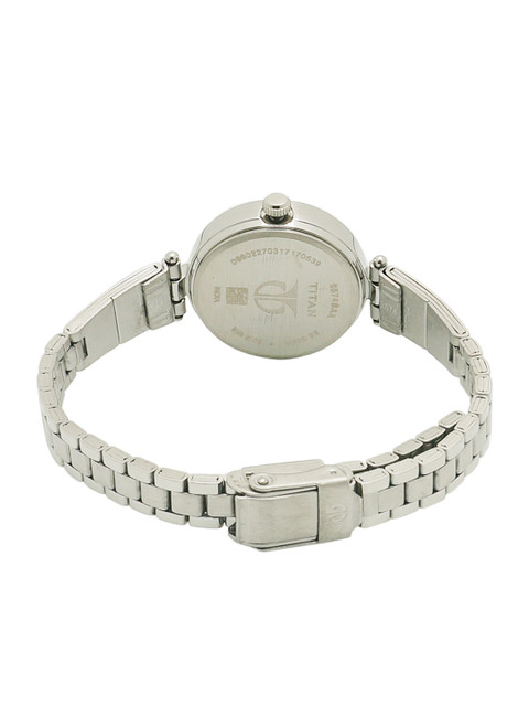 Timeless elegance meets refined simplicity in this Titan Karishma timepiece, designed for women who appreciate subtle sophistication. The watch features a rich midnight blue dial that beautifully contrasts with its polished silver-toned stainless steel strap. Slim hands and minimalist hour markers enhance the clean aesthetic, while the sleek round case ensures a graceful fit on the wrist. Whether styled with ethnic attire or modern ensembles, this versatile accessory adds a graceful charm to any look, making it an ideal choice for both daily wear and special occasions.