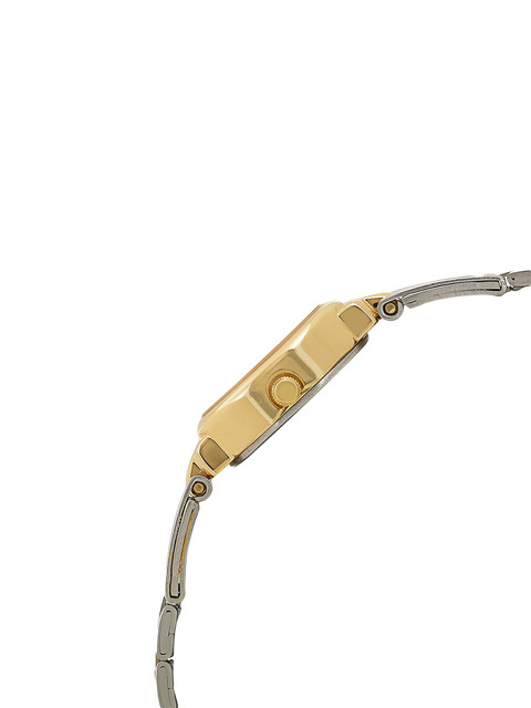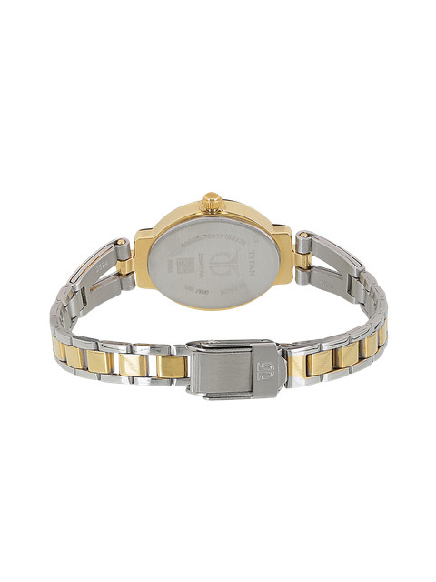 Refined elegance meets everyday functionality with this beautiful timepiece from Titan’s Karishma collection. Designed for the woman who loves a hint of luxury in her daily wear, this analog watch features a graceful oval silver dial, accented by minimalist gold dot markers and a unique textured center. The two-toned strap, crafted in polished silver and gold stainless steel, complements both ethnic and western outfits, making it a perfect choice for workwear and casual outings alike. With its timeless charm and sophisticated silhouette, this watch is an effortless style statement.