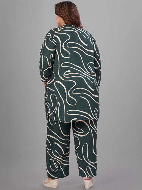 Green and white printed tunic, has a mandarin collar and three-quarter sleeves