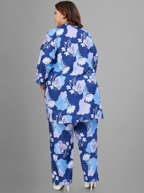 TITTLI Pack Of 2 Plus Size Printed Mandarin Collar Tunics & Trousers
