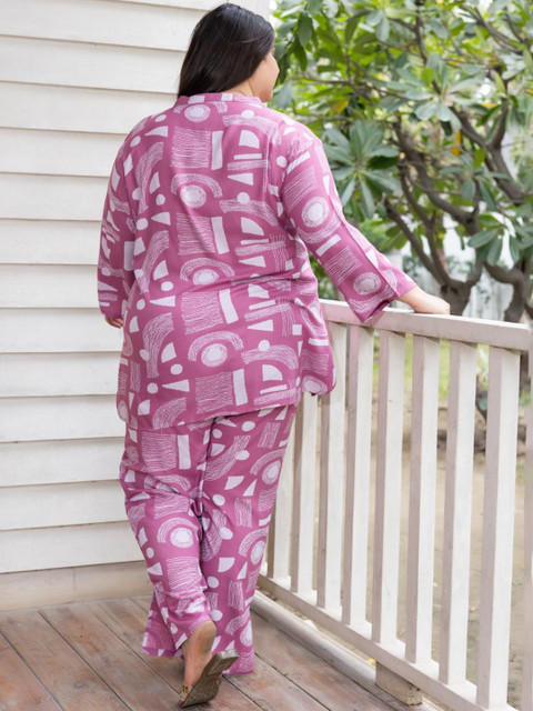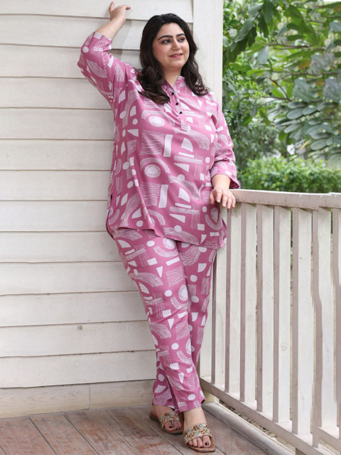 Pink and white printed co-ords has tunic and trouser