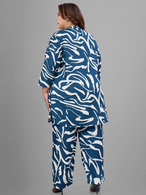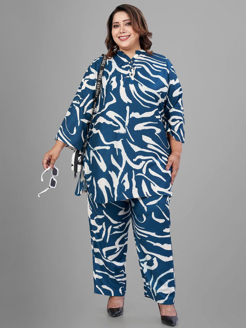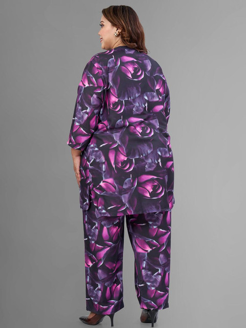 TITTLI Plus Size Pack Of 2 Floral Printed Mandarin Collar Tunic With Trousers