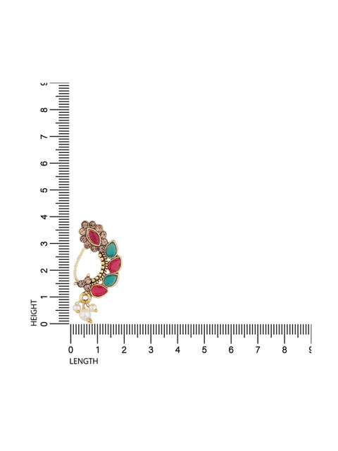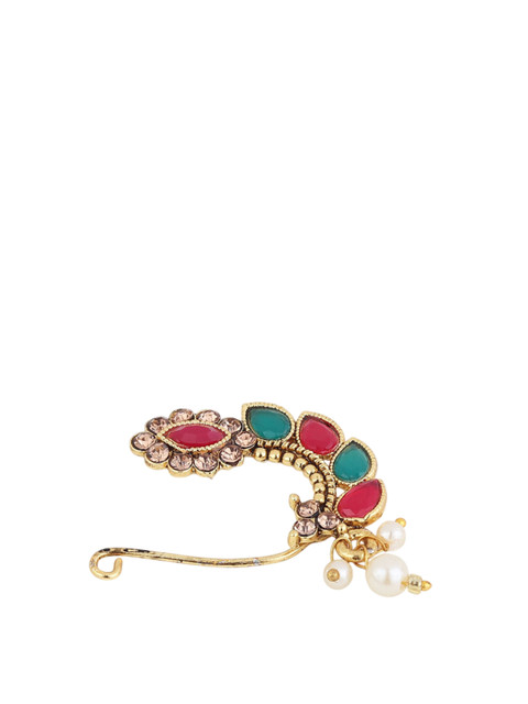 Gold toned,red & pink sterling silver nosepin has artificial stones studded & beaded details