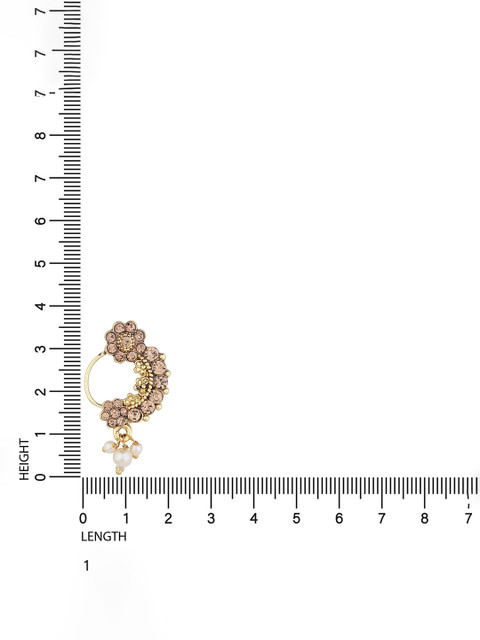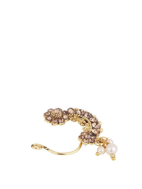 Gold toned,white & brown sterling silver nosepin has artificial stones studded & beaded details