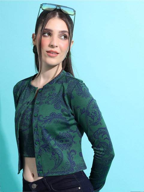 Okay so i bought this for myself and i really loved it. Honestly I was expecting a low quality item but trust me this looks exactly as it is shown in the picture. Usually I order items in size xs but this time I ordered in the size s because I was not sure about the measurements because it was my first time buying from Myntra but trust me just buy the size you usually buy don’t you worry about size, quality, color, pattern everything is the same as shown.If you are a crazy gal for matching cami and jackets this is just right for you. You’ll love it just fine😊💗(delivery and packaging was also good)