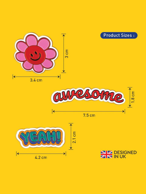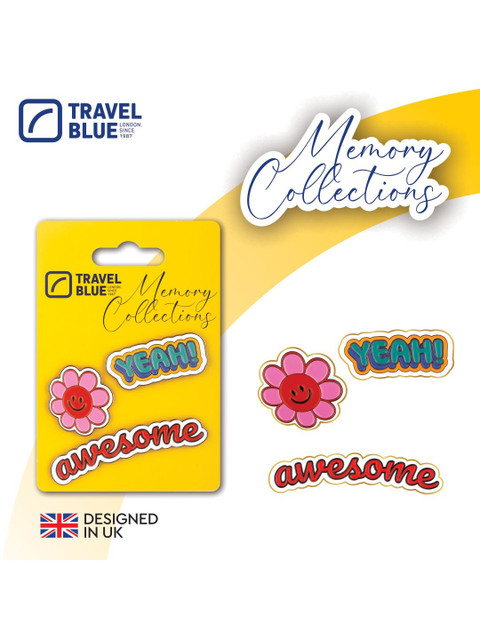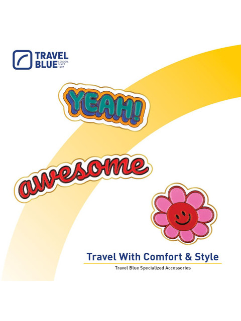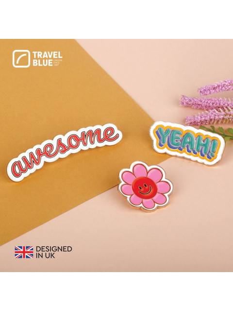 Set of 3 pink, red & blue printed India-Themed badge set