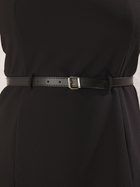 • Black solid a line dress