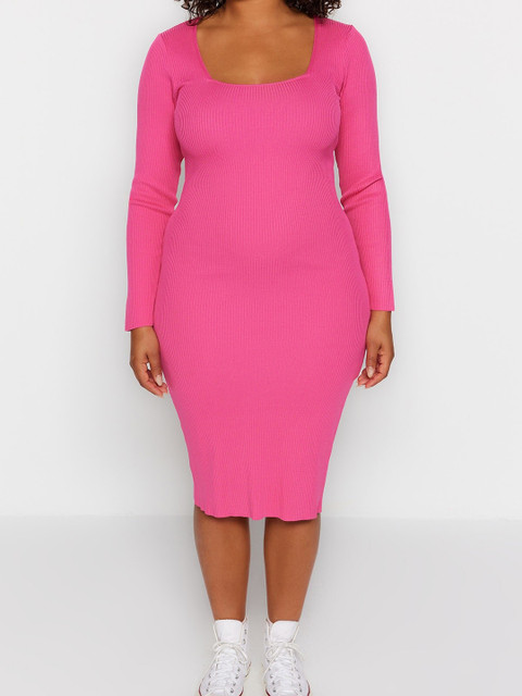 Trendyol Plus Size Square Neck Long Sleeves Bodycon Dress