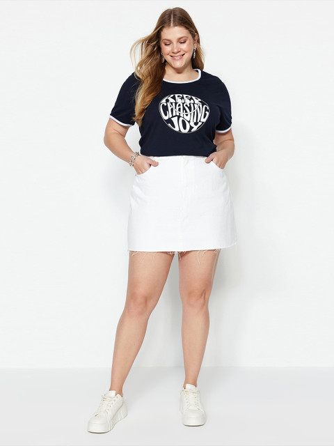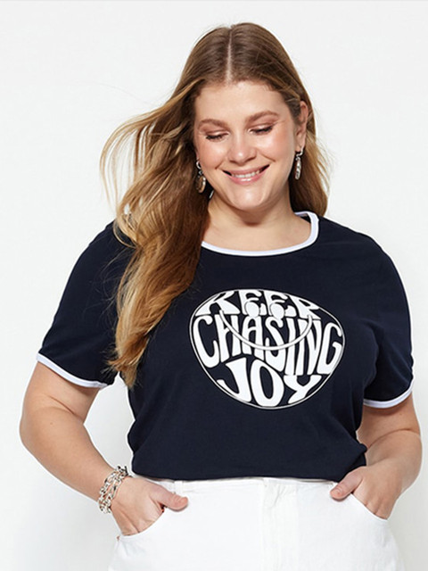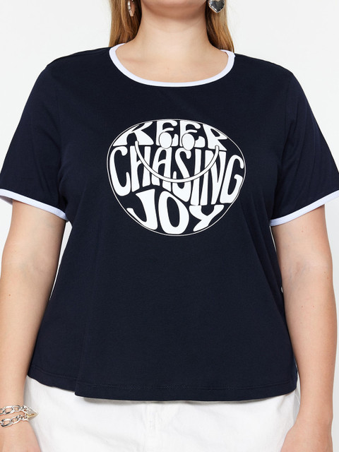 Trendyol Plus Size Typography Printed Pure Cotton T-shirt