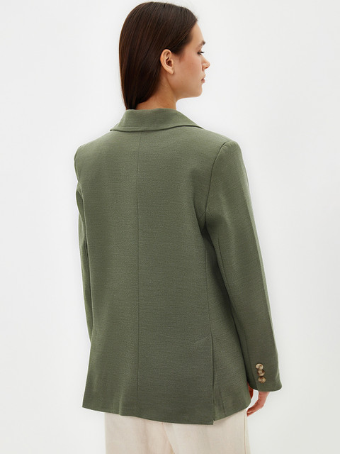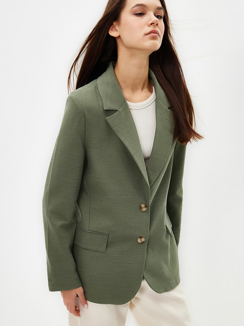 Green solid regular-fit blazer, has a notched lapel, long sleeves, single-breasted with button closure, two flap pockets, double hem