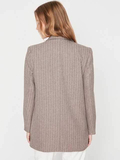 Brown striped regular-fit formal blazer, has a notched lapel, long sleeves, double-breasted with double button closure