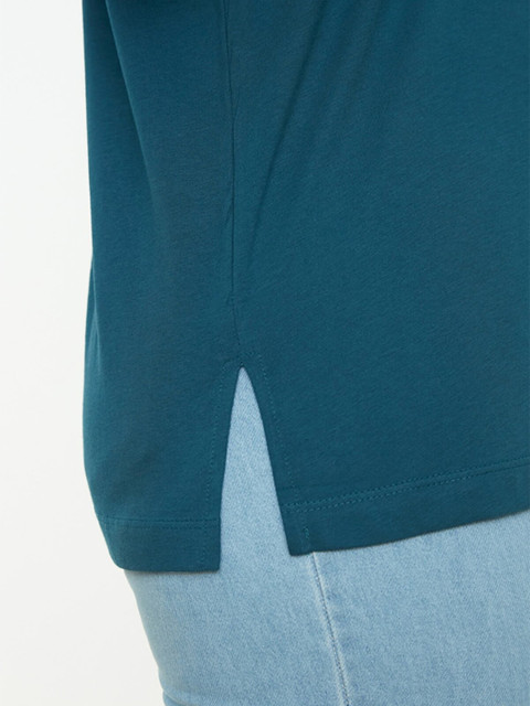 3 reviews for Trendyol Women Plus Size Teal Extended Sleeves Pure Cotton T-shirt