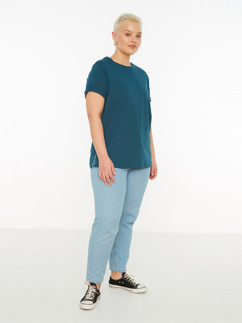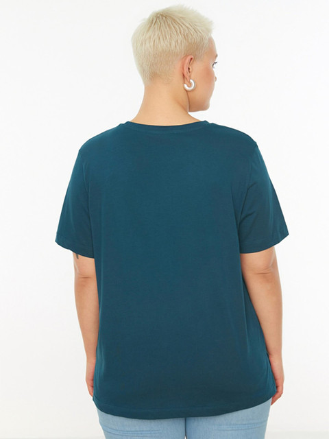 Trendyol Women Plus Size Teal Extended Sleeves Pure Cotton T-shirt