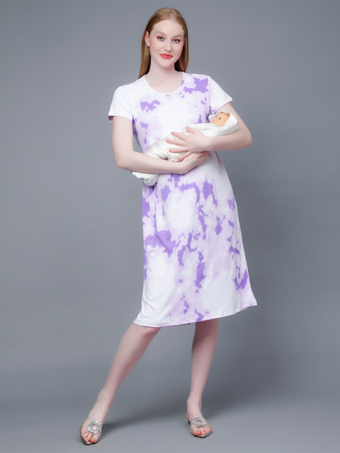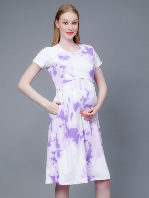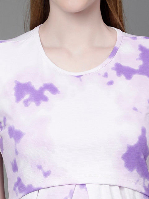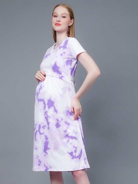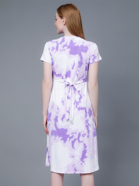 - Purple, white tie and dyed a-line dress