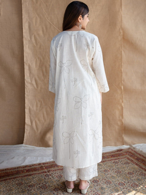 White and grey printed kurta with trouser