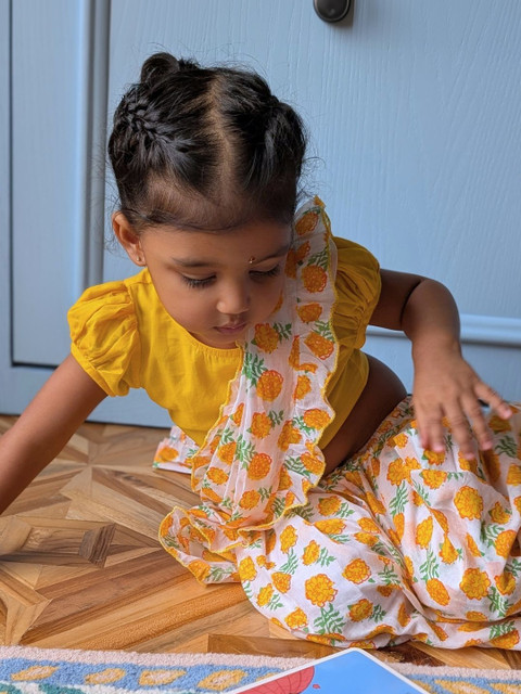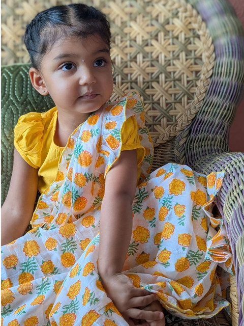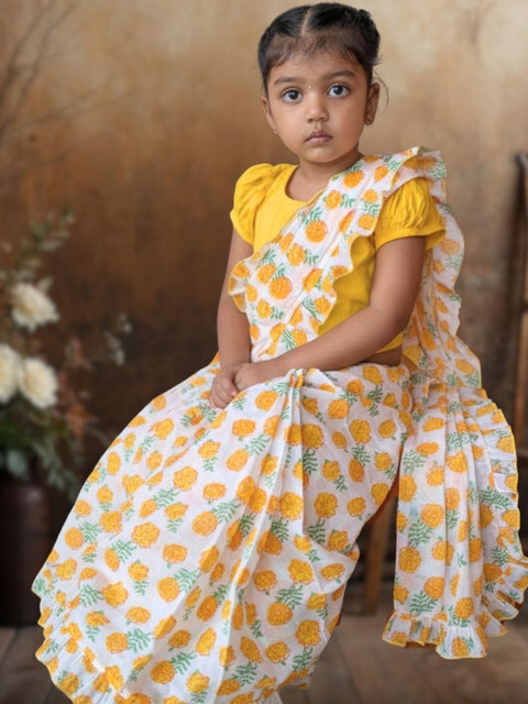 - Orange and white saree