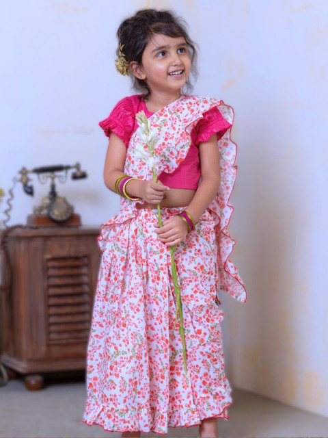 - Pink and white saree