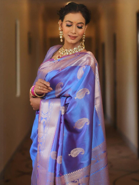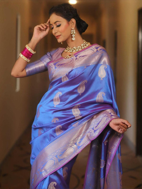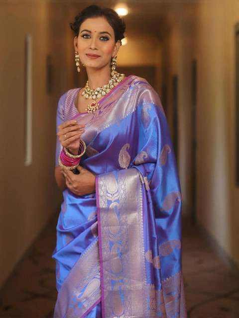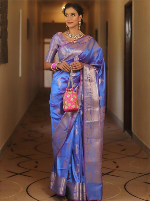 The blouse worn by the model might be for modelling purpose only. Check the image of the blouse piece to understand how the actual blouse piece looks like.