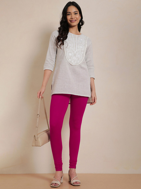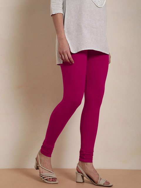 Pink solid churidar-length leggings, has an elasticated waistband and slip-on closure
