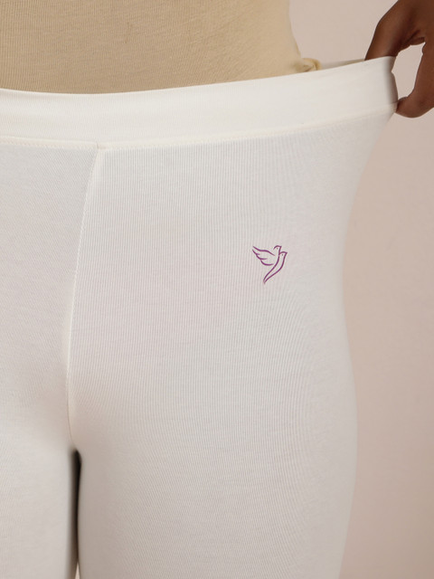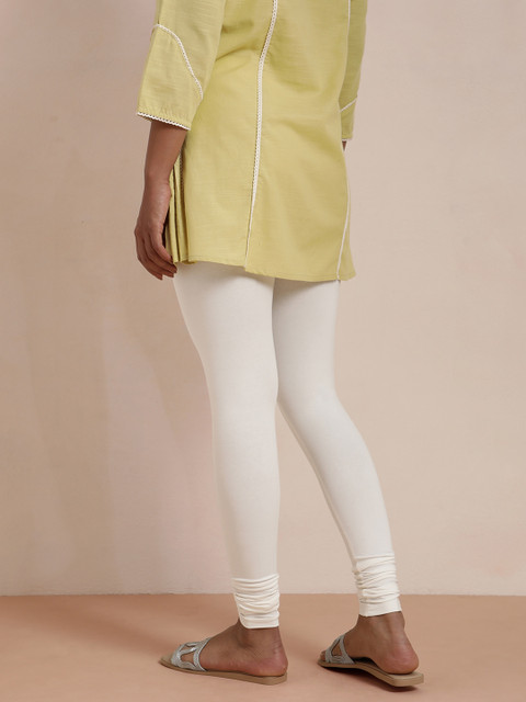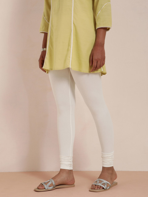 Cream-Coloured solid churidar-length leggings, has an elasticated waistband, and slip-on closure