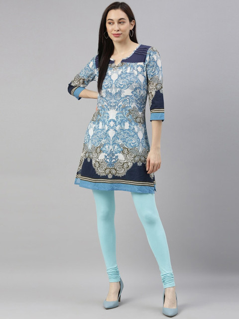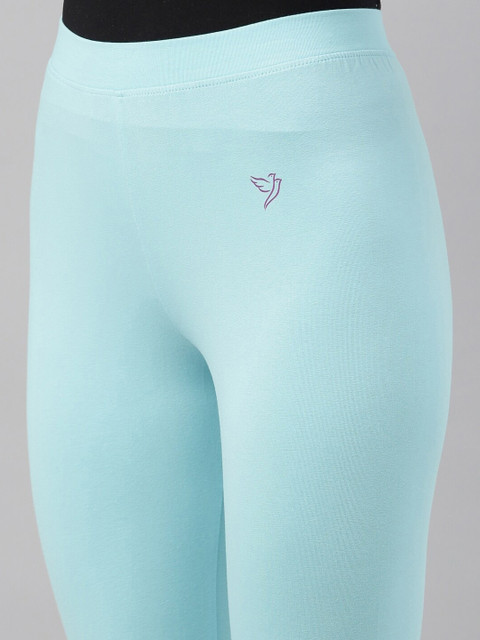 Blue solid churidar-length leggings, has an elasticated waistband and slip-on closure