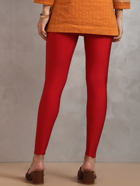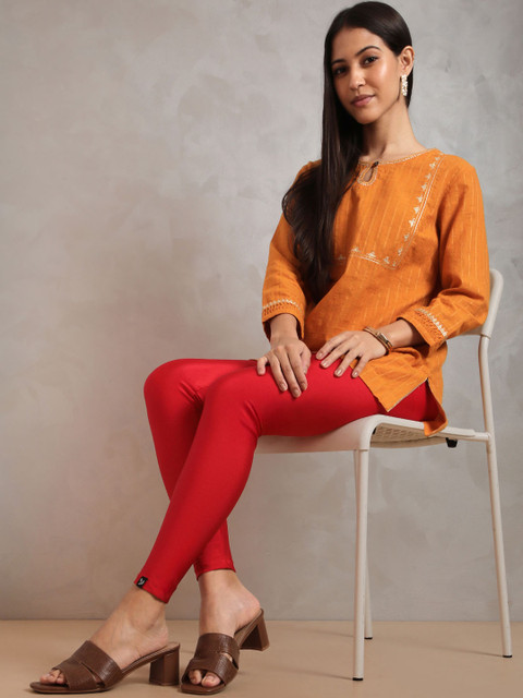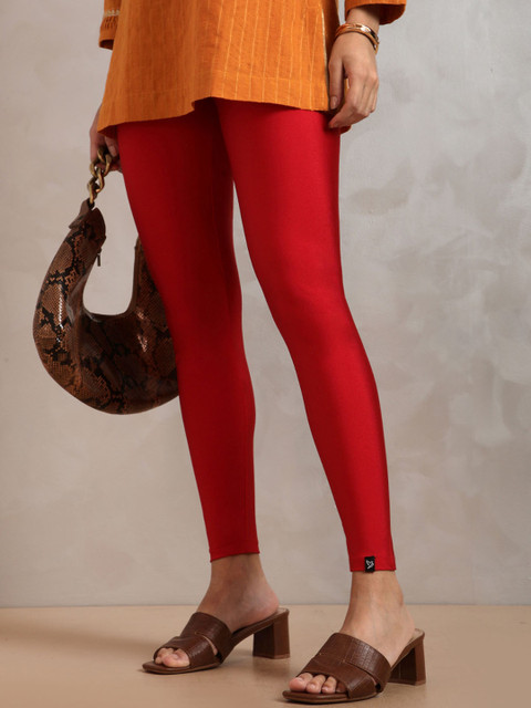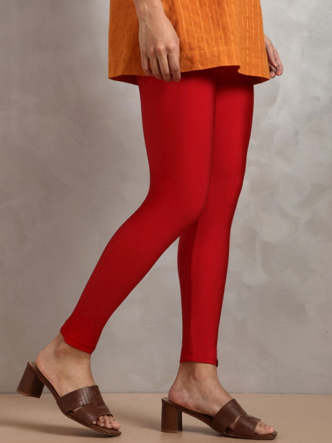 Sleek and comfy cream leggings with a slight sheen perfect for pairing with kurtis or tunics. Great stretch and fit!