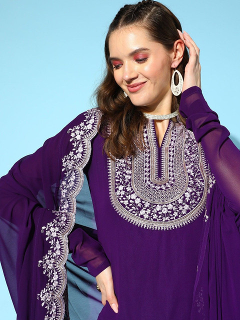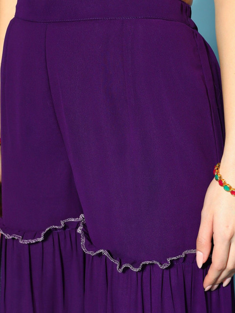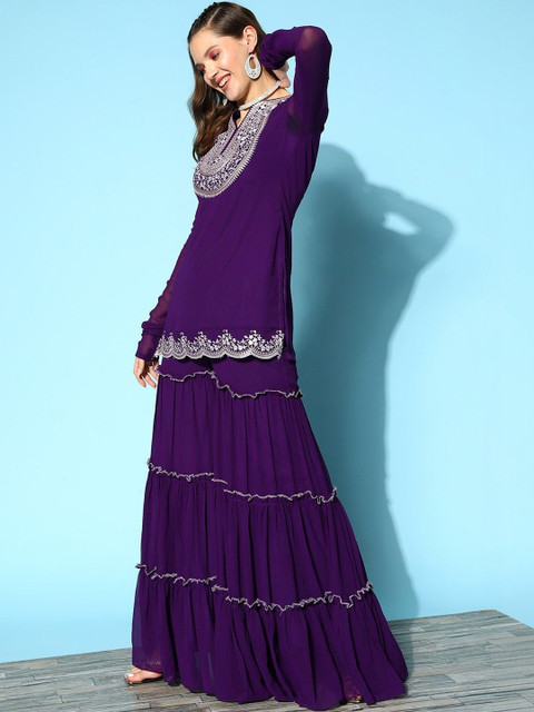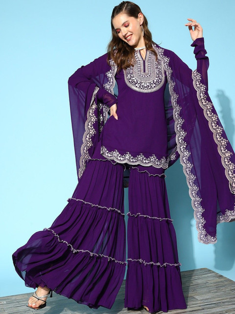Purple Embroidered Kurta with Sharara With Dupatta