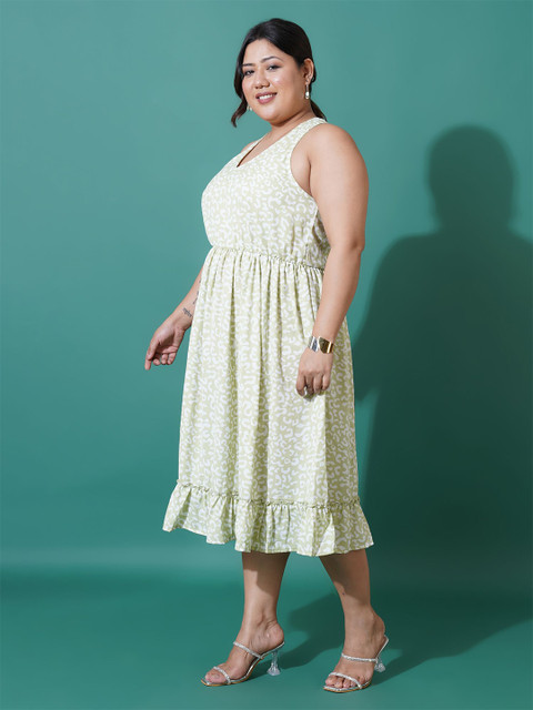 - Green abstract print fit & flare dress
