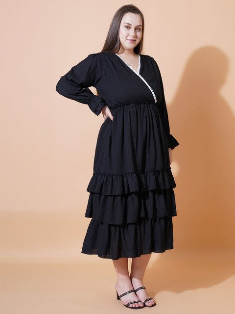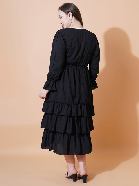 - Black solid fit & flare dress