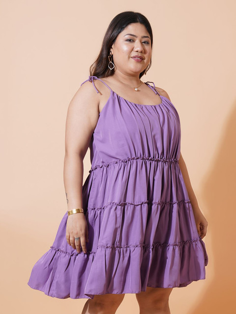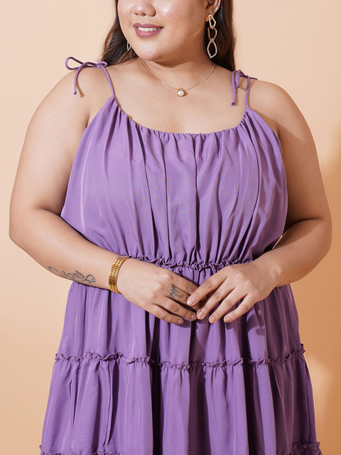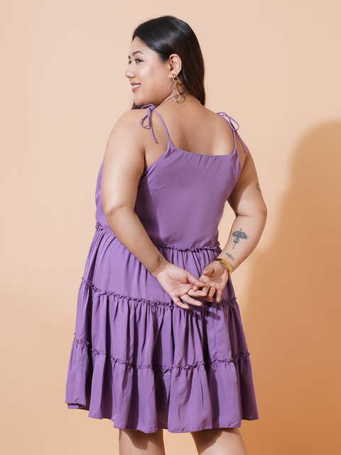 - Purple solid fit & flare dress
