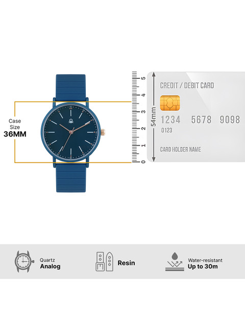 Strap Style: blue, regular, synthetic strap with a tang closure