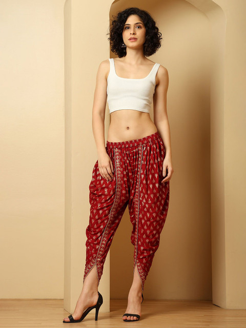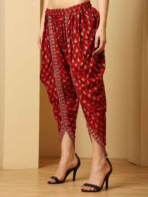 Maroon printed loose fit salwar has a waistband with slip-on closure