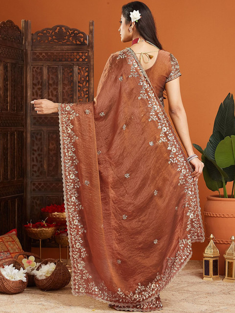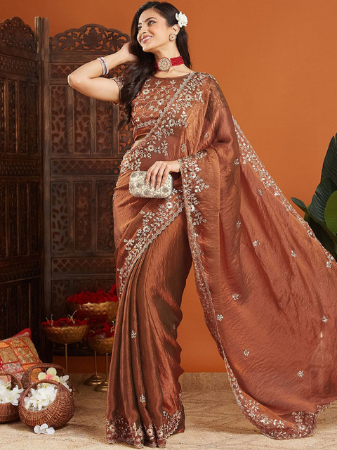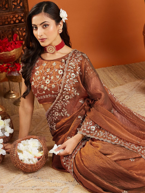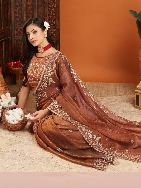 The blouse worn by the model might be for modelling purpose only. Check the image of the blouse piece to understand how the actual blouse piece looks like.