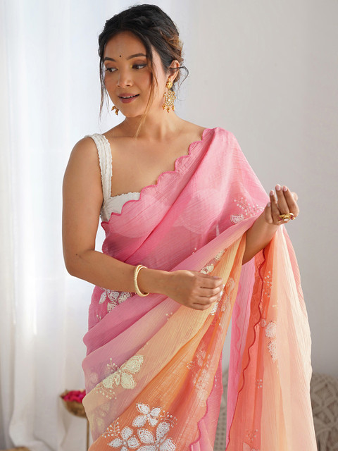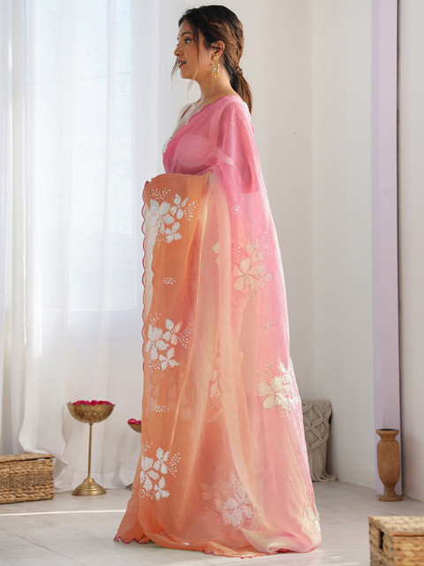 Urban Pallu Floral Sequinned Poly Chiffon Saree