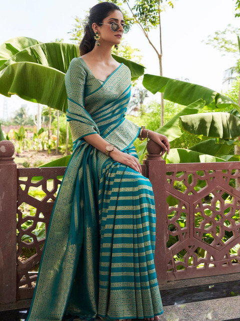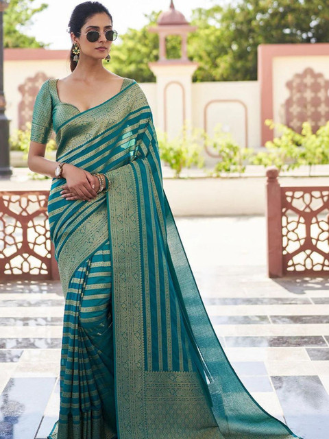 The blouse worn by the model might be for modelling purpose only. Check the image of the blouse piece to understand how the actual blouse piece looks like.