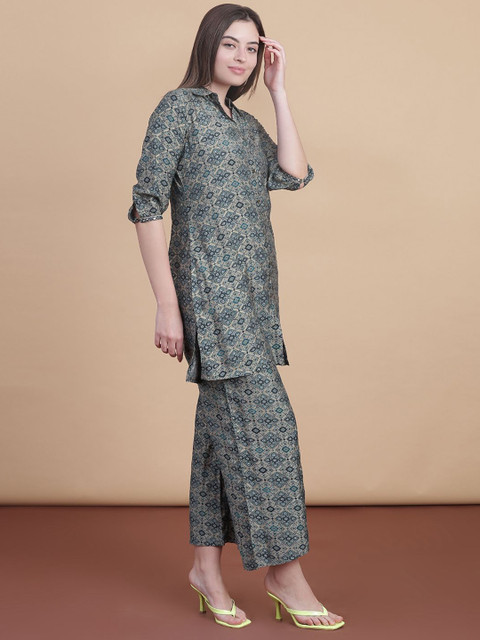 V-Mart Floral Printed Pure Cotton Shirt Collar Tunic With Trousers