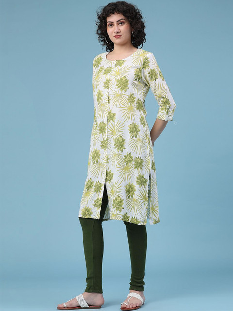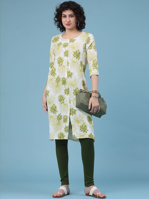 Green solid leggings, has an elasticated waistband with slip-on closure