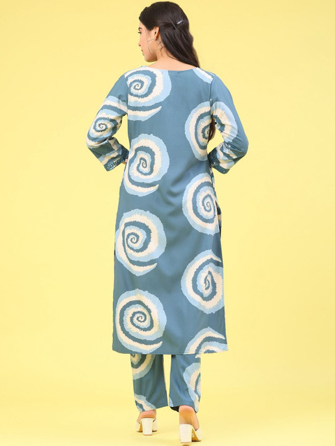 Blue and white printed trousers, has an elasticated waistband with drawstring closure