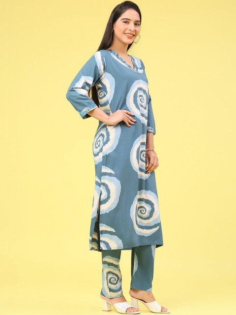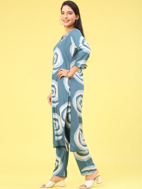 Blue and white printed tunic, has v-neck and three-quarter sleeves