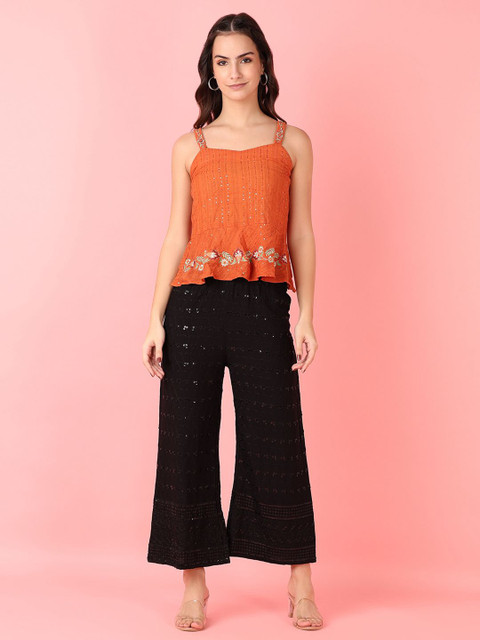 - Black knitted palazzos