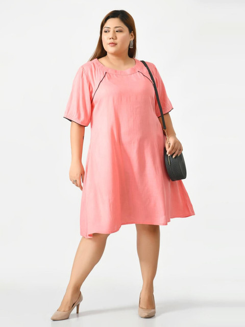 • Coral solid a-line dress