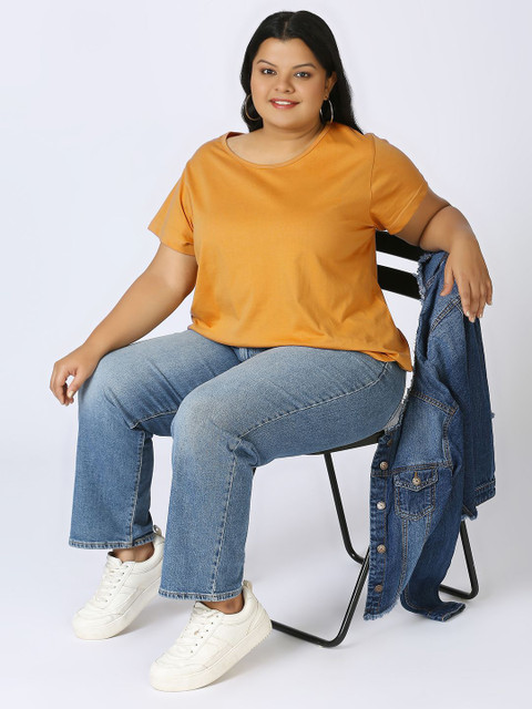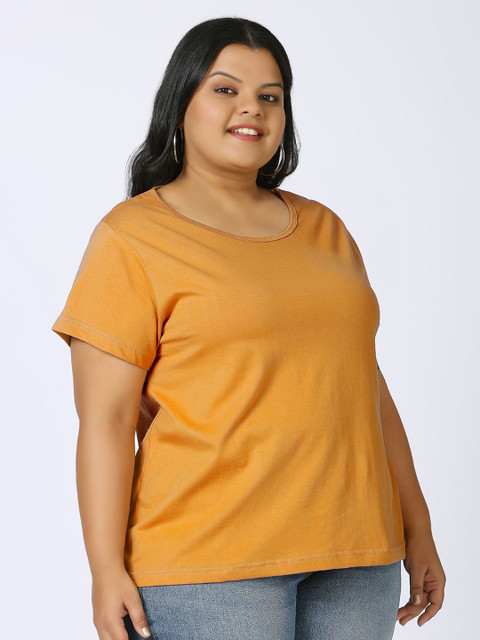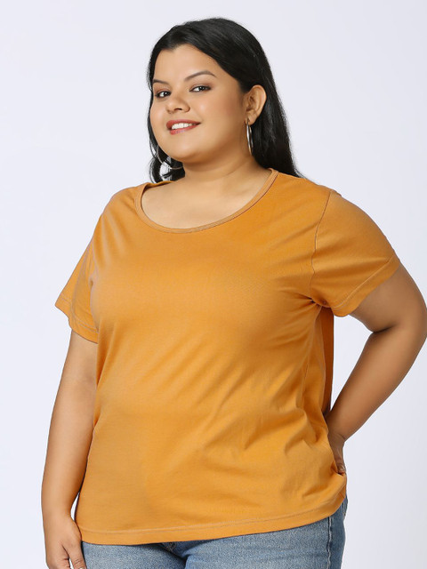 Vaishvik Women Plus Size Solid Round Neck Pure Cotton T-shirt