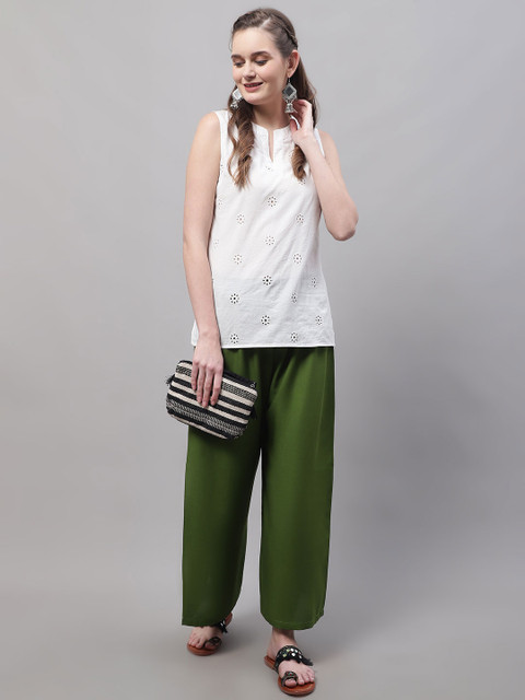 - Olive green and olive green woven palazzos