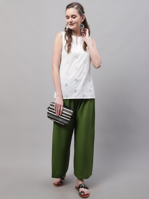 - Olive green and green woven palazzos