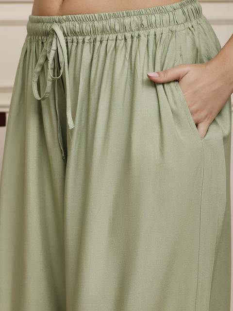 - Green woven palazzos