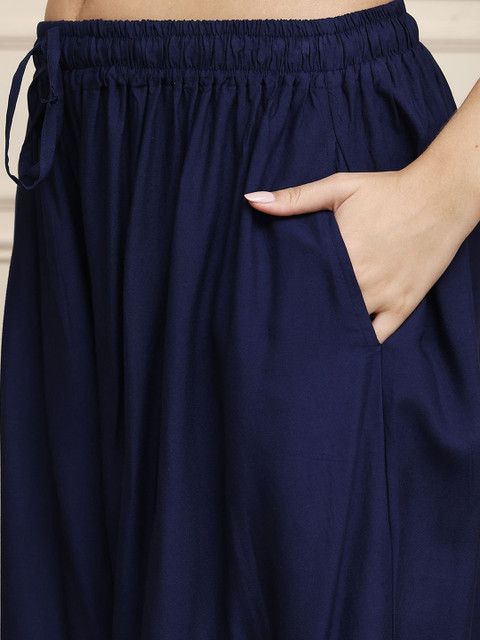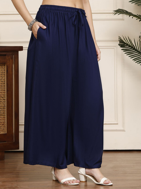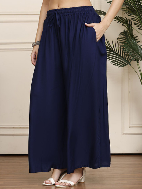 - Navy blue woven palazzos