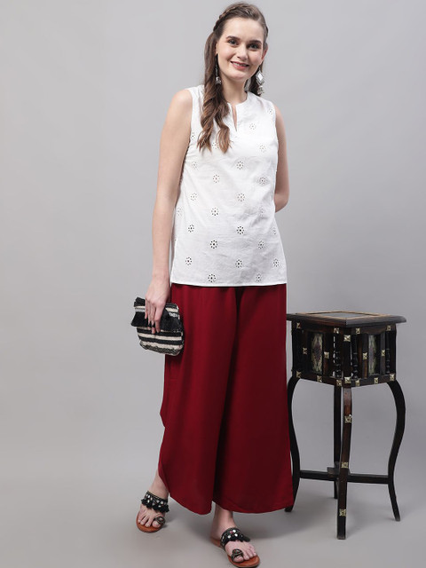 - Maroon and navy blue woven palazzos