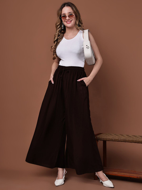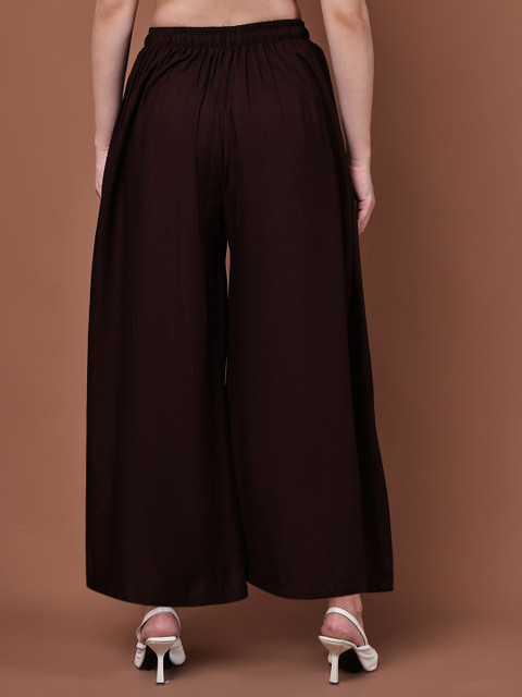 • Brown and black woven palazzos